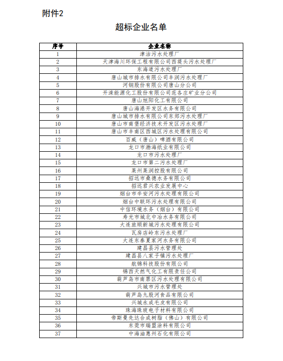 二、本次共抽測360家企業,其中廢水240家,超標排放33家;廢氣120家,超標排放5家(名單見附件2)。
